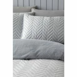Catherine Lansfield Silver So Soft Velvet Touch Zig Zag Pinsonic Duvet Cover And Pillowcase Set