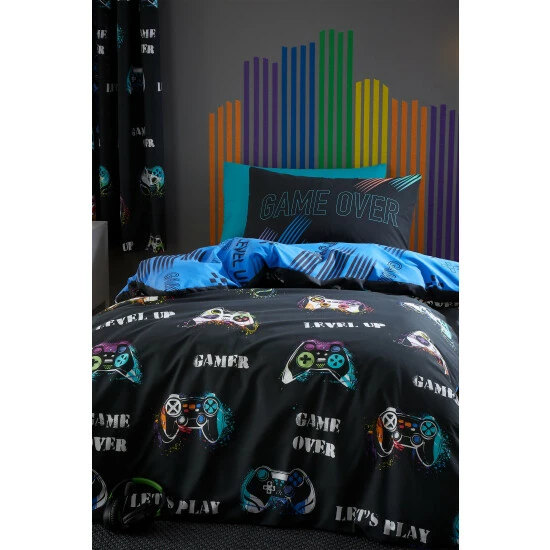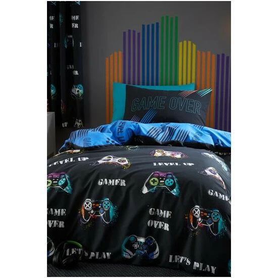 Catherine Lansfield is renowned for style and quality – designed and developed in Great Britain. Level up your bedroom. Finish their room with this fun fully reversible games controller bedding set, flashes of neon give this set an extra modern look. Created from easy-care and durable polycotton fabric for everyday use.Ethically sourced overseas and made to quality and human-ecological safety standards, in accordance with STANDARD 100 by OEKO-TEX®. Single size (135X200cm) includes one duvet cover and one pillowcase, double (200x200cm) and King (220x230cm) size includes one duvet cover and two pillowcases.