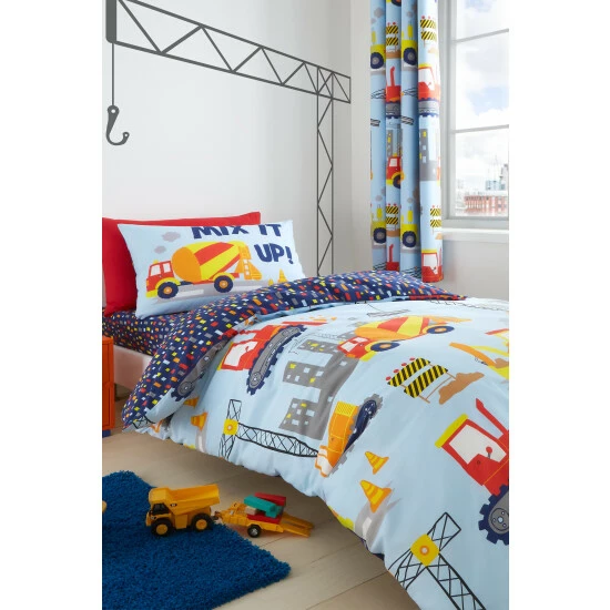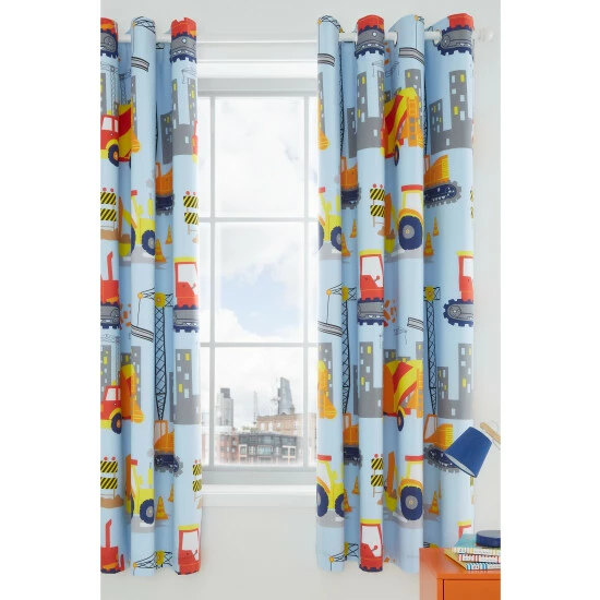 Catherine Lansfield is renowned for style and quality – designed and developed in Great Britain. On the move diggers, trucks & cranes are busy building, creating a pair of lively curtains in primary bright and pastel blue that is sure excite the imagination. Fully lined with a black out fabric ensuring a restful night s sleep. Ethically sourced overseas and made to quality and human-ecological safety standards, in accordance with STANDARD 100 by OEKO-TEX®. Made from 52% Polyester 48% Cotton. Dry Clean Only.
