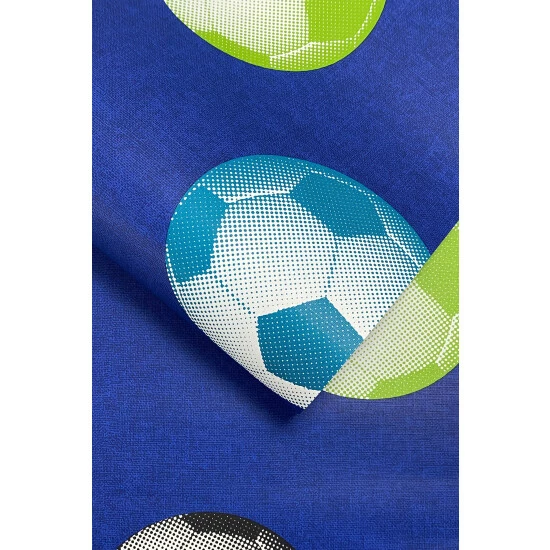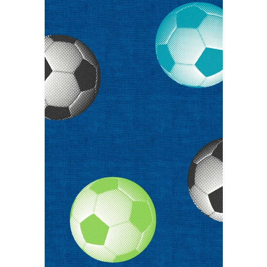 Footy mad? Transform their room into a football fan s dream with this cool wallpaper design featuring footballs in bright shades of blue and green.