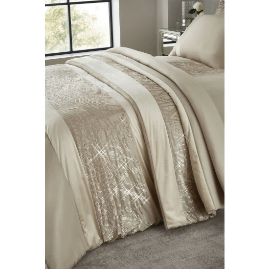 Catherine Lansfield is renowned for style and quality – designed and developed in Great Britain. Art Deco inspired, shimmering panels of sparkling sequins decorate this soft velvet touch bedlinen in a glamorous and elegant champagne colour. Ethically sourced overseas and made to strict quality and human-ecological safety standards. Made from 100% Polyester front with a 50% Cotton 50% Polyester reverse. Wash as 30 Degrees. Turn over pillowcases for sleeping comfort. Double Duvet Set and 2 Pillowcases, King Duvet Set and 2 Pillowcases, Super King Duvet Set and 2 Pillowcases, Pillowsham Pair 50 x 75 + 5cm border, Filled Cushion 30x40cm.