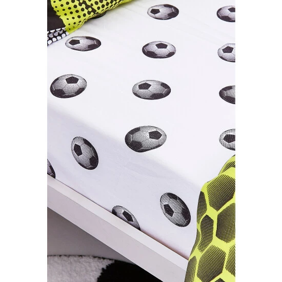 Catherine Lansfield is renowned for style and quality – A contemporary Great British design. This white sheet is covered with printed footballs and will co-ordinate perfectly with the Football bedroom collection. Lovingly crafted from comfortable, easy care 52% Polyester and 48% Cotton fabric and meets the human-ecological safety STANDARD 100 by OEKO-TEX®. Ideal for busy and modern lifestyles, this machine washable sheet requires minimal ironing. Search ‘Catherine Lansfield Football’ to view the full collection.