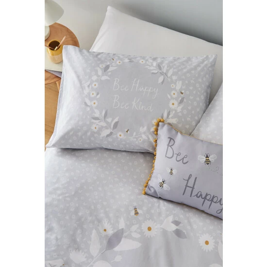 Catherine Lansfield is renowned for style and quality – designed and developed in Great Britain. Feel happy every day with this sketchy inspirational slogan bedding with a busy little bee scatter reverse in fresh Scandi grey and pops of ochre. Ethically sourced overseas and made to quality and human-ecological safety standards, in accordance with STANDARD 100 by OEKO-TEX.