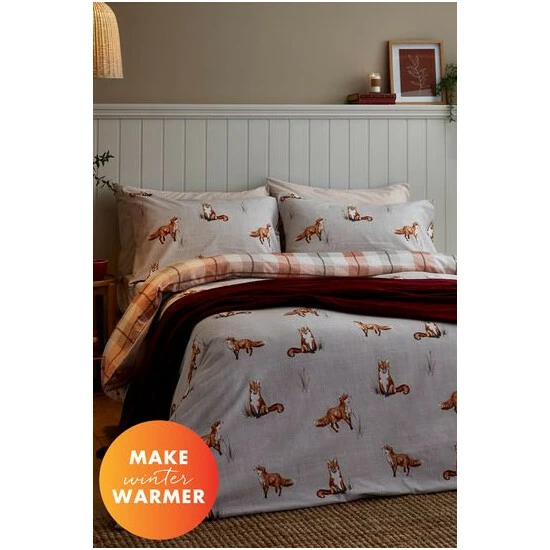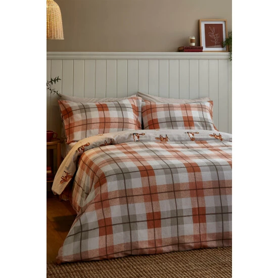 Catherine Lansfield is renowned for style and quality – designed and developed in Great Britain. In a fine hand-painted style, inquisitive country foxes cover this natural tone set which is fully reversible with a tartan check reverse in matching warm tone colours. The soft to touch cotton blend ensures a cosy and comfortable nights sleep. Ethically sourced overseas and made to quality and human-ecological safety standards, in accordance with STANDARD 100 by OEKO-TEX®. Single size (135X200cm) includes one duvet cover and one pillowcase, double (200x200cm) and King (220x230cm) size includes one duvet cover and two pillowcases.