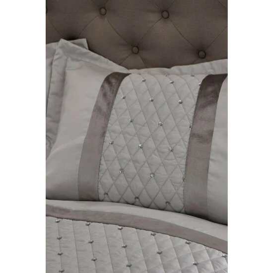 Catherine Lansfield is renowned for style and quality – A glamorous statement piece developed and designed in Great Britain. Bring a touch of sophisticated glamour to your room with the Sequin Cluster collection. Featuring a band of plush quilting, each diamond is dotted with a glittering rosette of diamantes. Lovingly crafted from matt satin blend fabric with glistening sequin embellishment and velvet band detail. Pair with the matching bedlinen and accessories to complete the look. Search ‘Catherine Lansfield Sequin Cluster’ for the full collection.